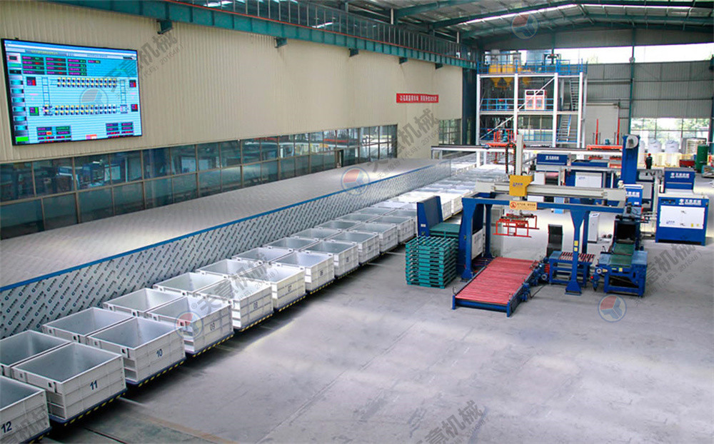 水泥發(fā)泡保溫板生產(chǎn)線是我公司順應市場需求新研發(fā)的成套設備。該生產(chǎn)線將工藝流程劃分為攪拌系統(tǒng)、循環(huán)澆注系統(tǒng)、脫模系統(tǒng)、切割系統(tǒng)、包裝系統(tǒng)、儲存系統(tǒng)、廢料破碎回收系統(tǒng),全套生產(chǎn)線可實現(xiàn)班產(chǎn)量400—600m3,全部利用自動控制生產(chǎn)流程,所需人工9—12人,大大降低生產(chǎn)成本.