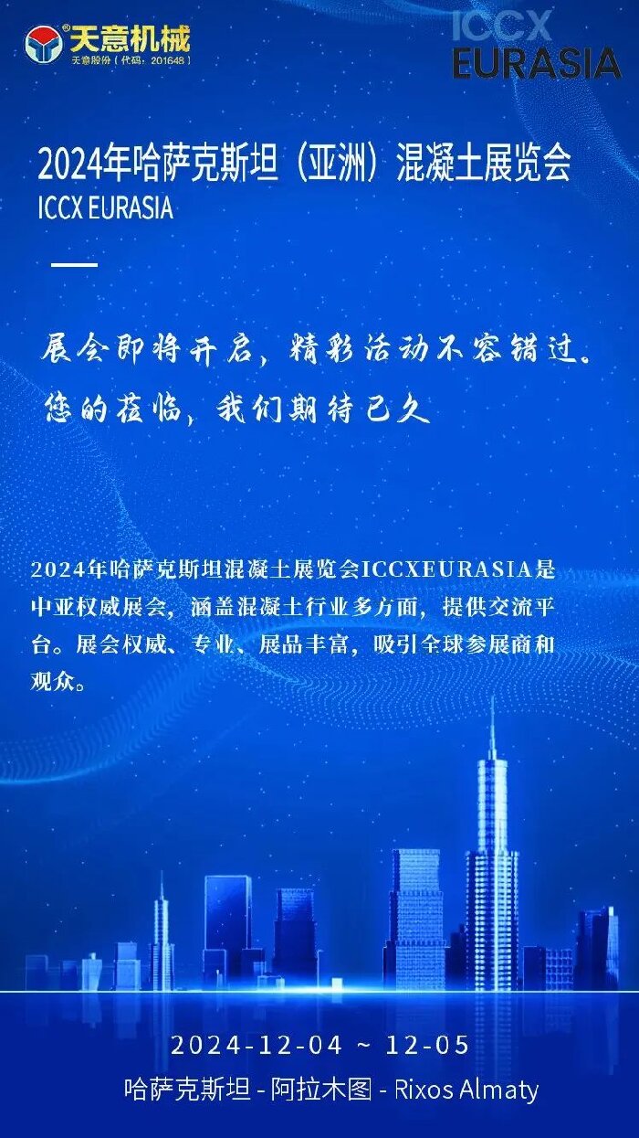 征程在即丨天意機械即將亮相2024年哈薩克斯坦混凝土展覽會 ICCX Eurasia
